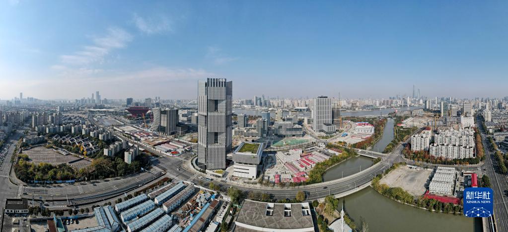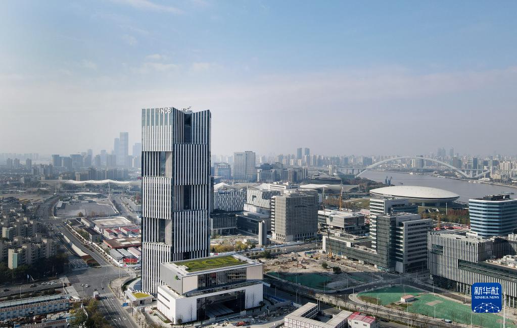 这是位于上海世博园区的新开发银行总部大楼(2020年12月17日摄,无人机照片)。新华社记者 方喆 摄