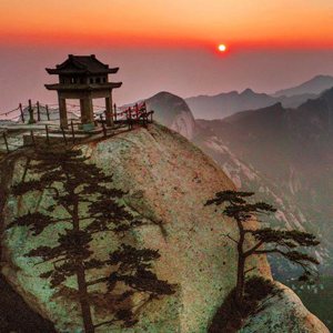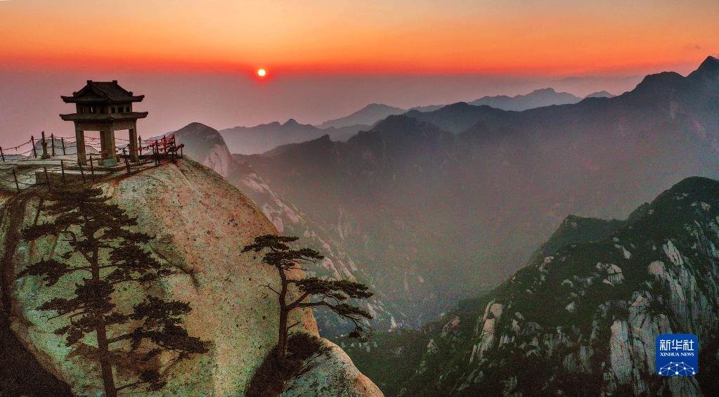 这是在华山东峰拍摄的日出(8月15日摄,无人机照片)。新华社记者 陶明 摄