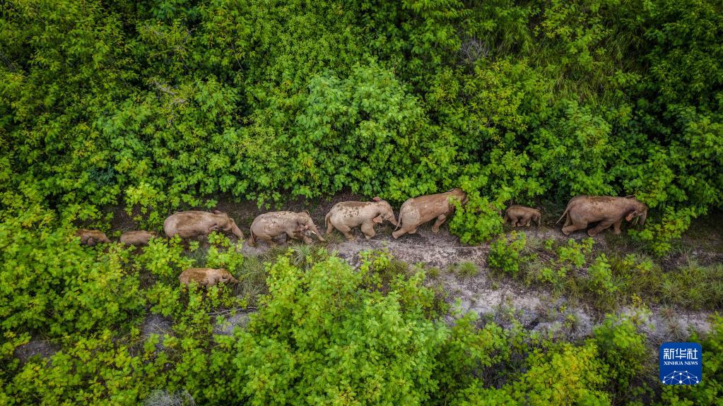 这是在云南省昆明市晋宁区夕阳彝族乡拍摄的野象(6月7日摄,无人机照片)。新华社发