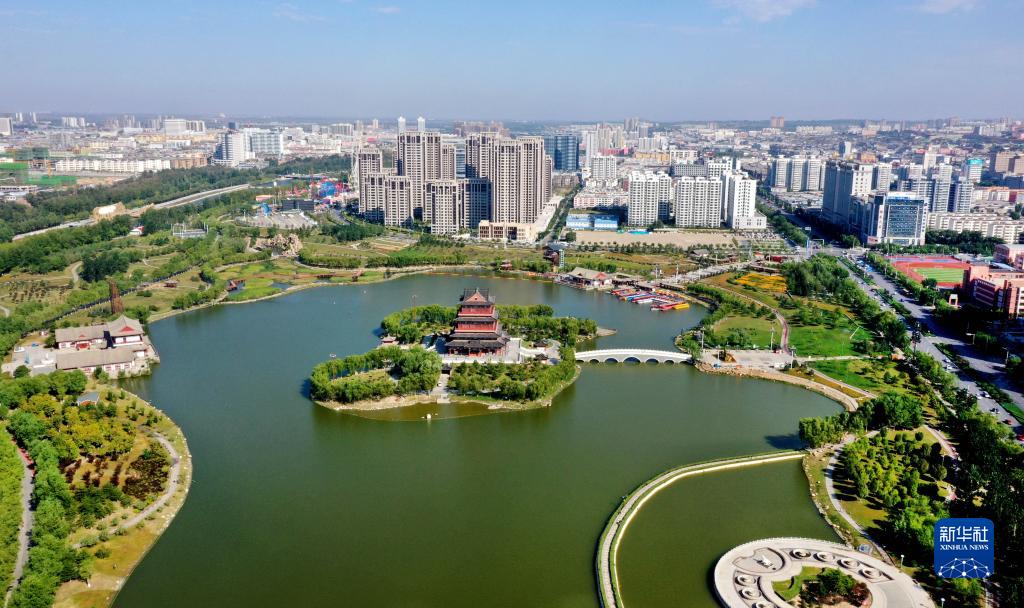 陕西省榆林市榆溪河生态长廊(9月11日摄,无人机照片)。新华社记者 陶明 摄
