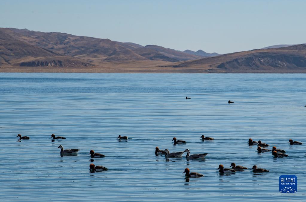 这是西藏羊卓雍错湖面上的水鸟(1月10日摄)。新华社记者 孙非 摄