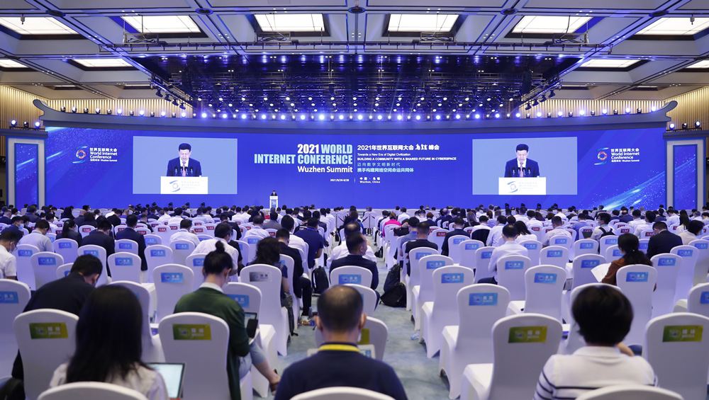 由国家网信办和浙江省政府共同举办的2021年世界互联网大会乌镇峰会,将于9月26日至28日在浙江乌镇召开。本次大会的主题是“迈向数字文明新时代——携手构建网络空间命运共同体”。图为会议进行中。