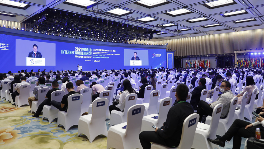 由国家网信办和浙江省政府共同举办的2021年世界互联网大会乌镇峰会,将于9月26日至28日在浙江乌镇召开。本次大会的主题是“迈向数字文明新时代——携手构建网络空间命运共同体”。图为会议进行中。