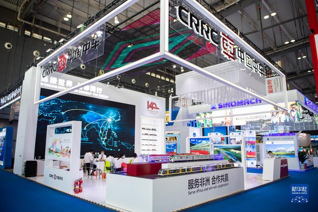这是9月28日在第二届中国-非洲经贸博览会上拍摄的中国中车展台。新华社记者 陈思汗 摄