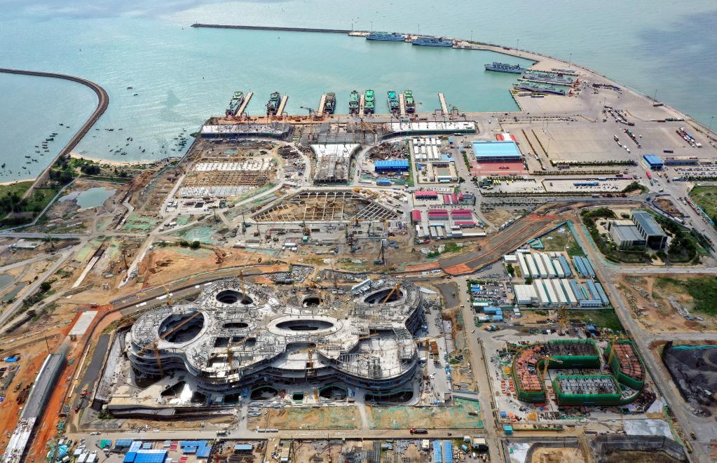 7月28日拍摄的海口国际免税城项目施工现场(无人机照片)。(新华社记者郭程摄)