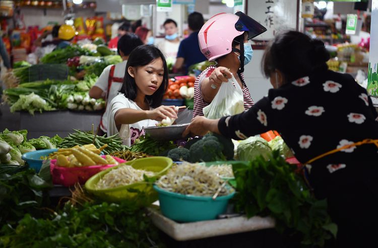 10月13日,海口市民在城东农贸市场买菜。新华社记者 郭程 摄