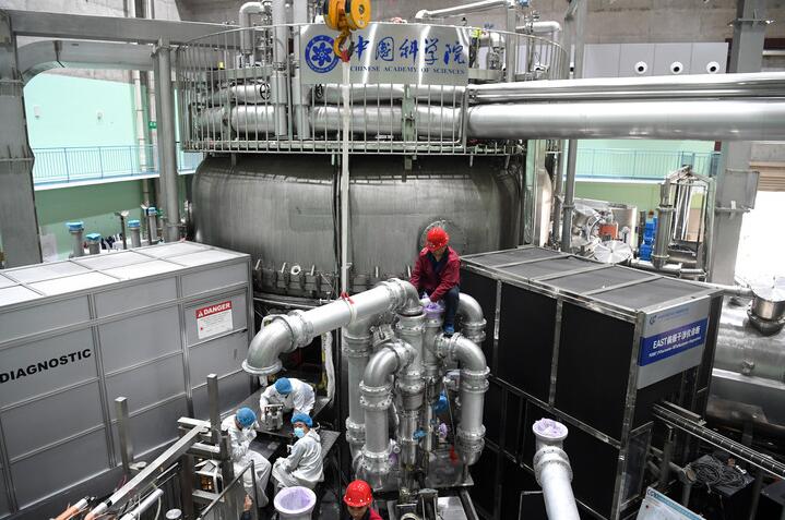 在中科院合肥物质科学研究院,工作人员对全超导托卡马克核聚变实验装置(EAST)进行升级改造(4月13日摄)。新华社记者 刘军喜 摄
