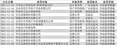 多家中介机构年内多次受罚。大华会计师事务所、中审华会计师事务所、亚太(集团)会计师事务所等多家中介机构年内被处罚次数均在4次及以上,而海通证券股份有限公司、瑞华会计师事务所和中兴财光华会计师事务所年内被罚均达7次。