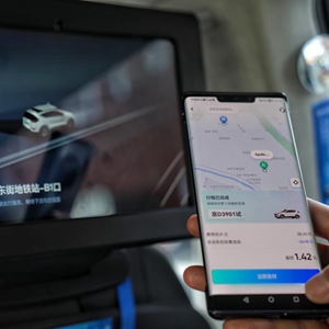 11月25日,北京开放首个自动驾驶出行服务商业化试点,乘客支付车费。(新华社记者彭子洋 摄)