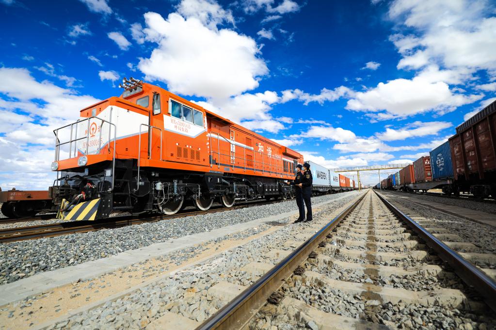 在二连浩特铁路口岸,二连海关关员现场核对出境中欧班列车辆及集装箱信息。(受访者供图)