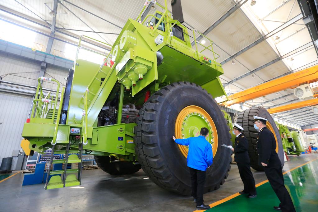 包头海关关员监管内蒙古北方重型汽车股份有限公司出口的矿用车。(受访者供图)