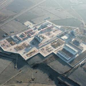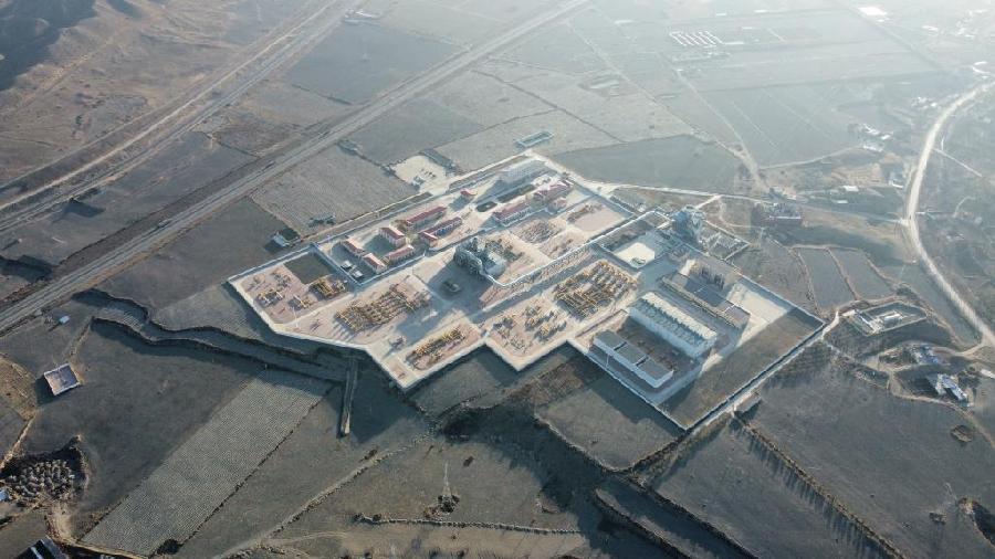 位于腾格里沙漠边缘的“西气东输”中卫压气站(无人机拍摄,新华社记者靳赫 摄)