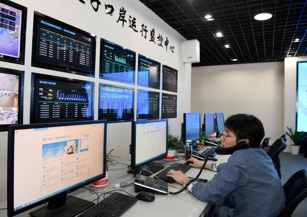 福建自贸区厦门片区国际贸易“单一窗口”的工作人员在网上进行业务受理。新华社记者 姜克红 摄