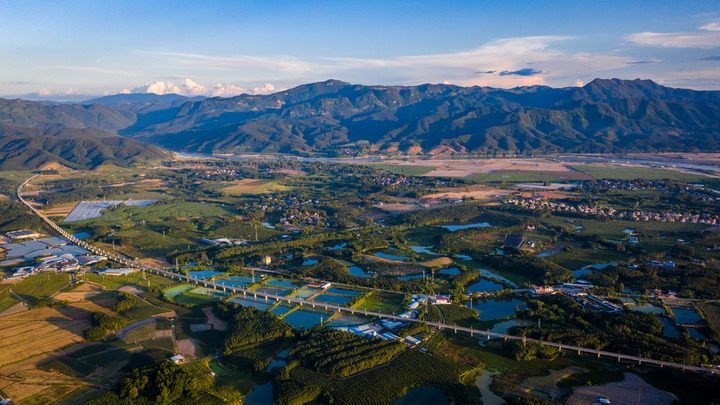 9月28日拍摄的中老铁路橄榄坝特大桥(无人机照片)。新华社记者 胡超 摄