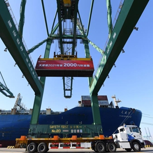 新华社天津12月18日电(记者王井怀)12月18日,天津港年集装箱吞吐量首次突破2000万标准箱。天津港(集团)有限公司相关负责人认为,这标志着天津港集装箱事业实现跨越式发展,服务国家战略和区域经济发展的能力持续增强。