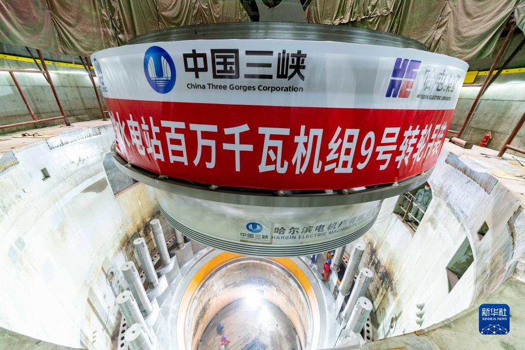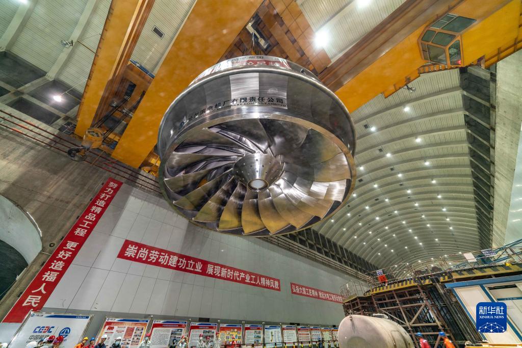 12月19日,白鹤滩水电站最后一台机组——9号水轮发电机组转轮顺利完成吊装。新华社发(赵健 摄)