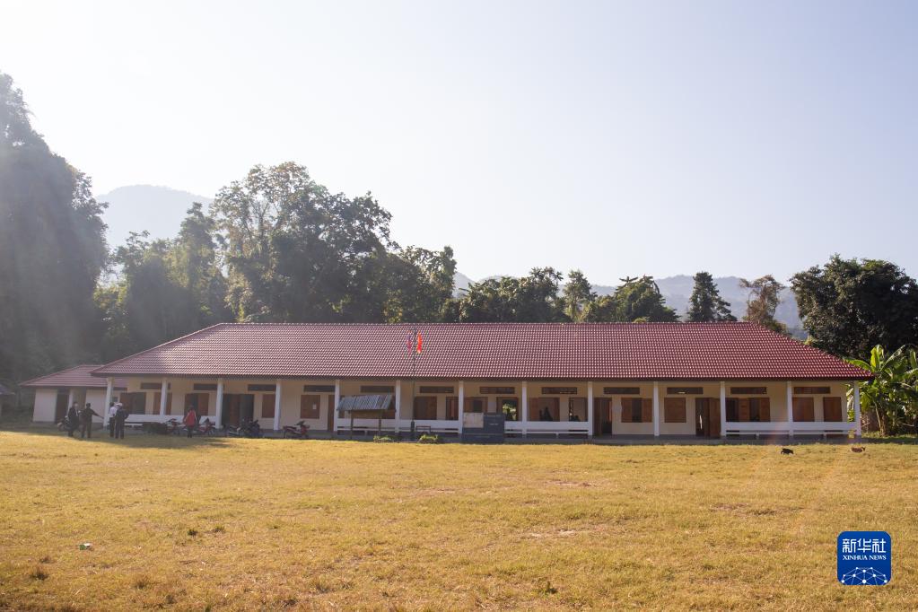 这是12月13日在老挝旺莱村拍摄的中国南方电网公司援建的旺莱村小学。新华社发(凯乔摄)
