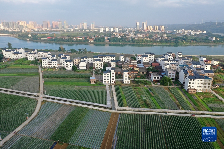 这是广西田东县平马镇四平村的蔬菜基地和民居风貌(无人机照片,11月4日摄)。新华社记者 陆波岸 摄