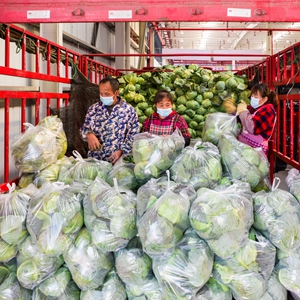 12月2日,在常德国际农产品交易中心的交易大厅,工作人员在整理蔬菜。新华社记者 陈思汗 摄