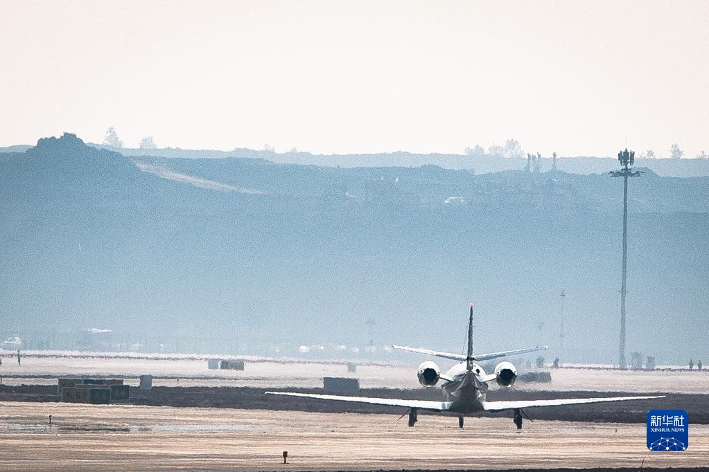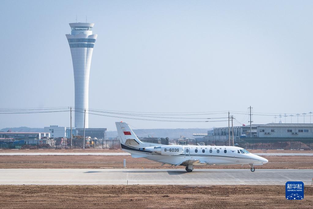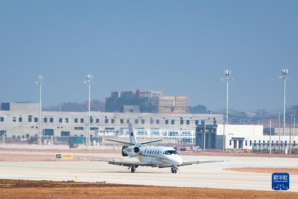 12月29日,校飞飞机在鄂州花湖机场降落滑行。新华社记者 肖艺九 摄