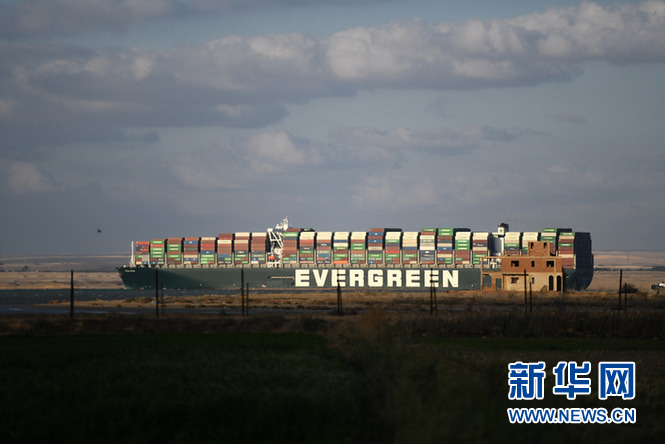这是3月29日拍摄的移动至埃及苏伊士运河正常航道上的重型货轮。新华社记者 邬惠我 摄