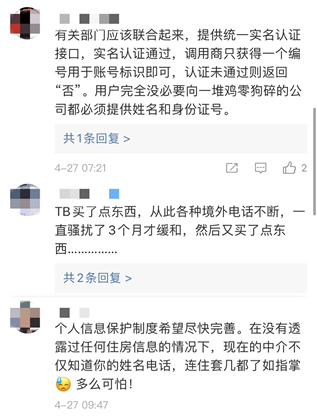 图为#强化超大互联网平台个人信息保护义务#话题下的网友回复