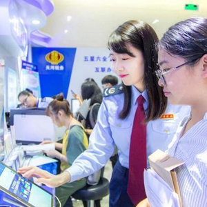 资料图:税务人员帮助纳税人通过电子税务办理业务。杨锐轩 摄