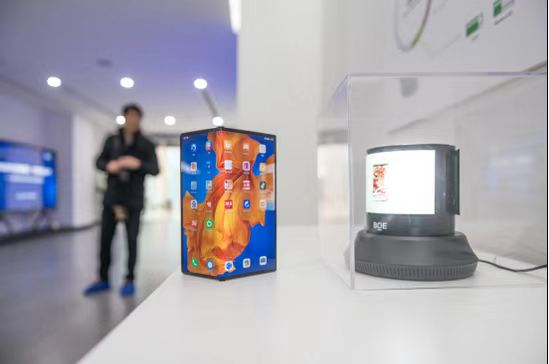 图为地处重庆两江新区水土新城的重庆京东方光电科技有限公司展出的显示屏产品。(邹乐摄)