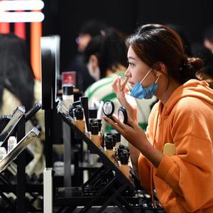 2022年1月3日,顾客在海口日月广场免税店选购化妆品。 新华社记者 郭程 摄