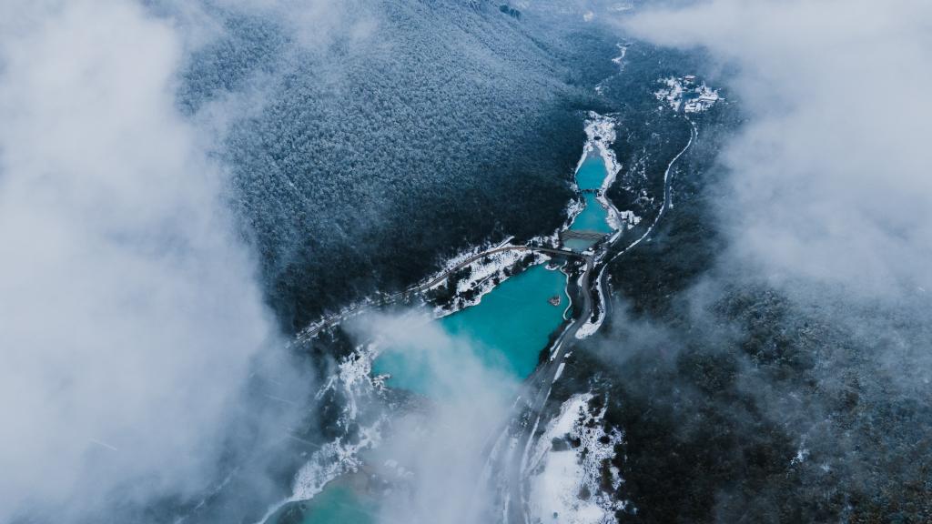 1月13日拍摄的蓝月谷一景(无人机照片)。新华社记者王冠森 摄