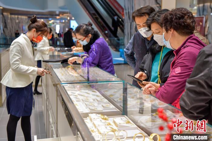 顾客在海控全球精品免税城选购黄金饰品。 骆云飞 摄