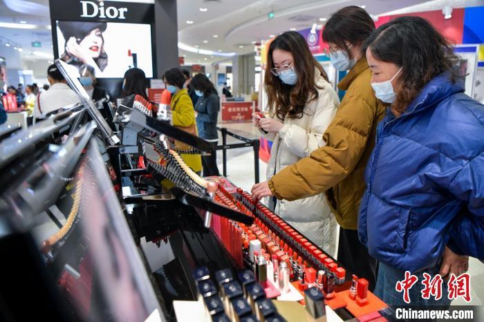 顾客在中免集团海口日月广场免税店选购化妆品。 骆云飞 摄