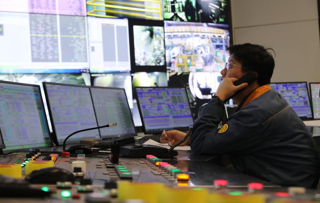 操作员坐在集控室里控制车间运行。新华社记者方喆 摄
