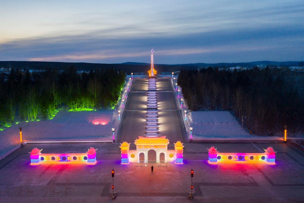 2021年1月8日拍摄的漠河市北极星广场(无人机照片)。新华社记者 谢剑飞 摄