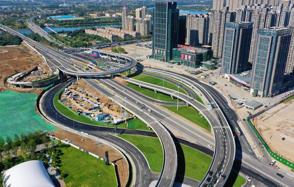 通燕高速三河燕郊西出口立交枢纽俯瞰图。(刘向 摄)
