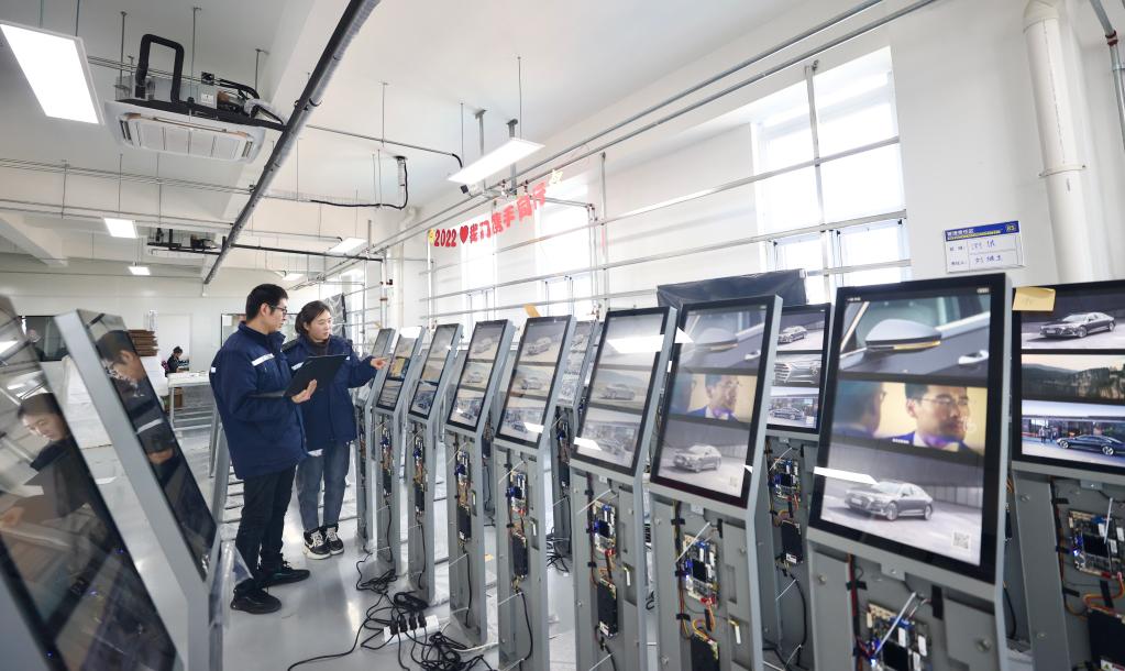 在专显(河北)科技有限公司,技术人员检测显示屏产品。(贾珺 摄)
