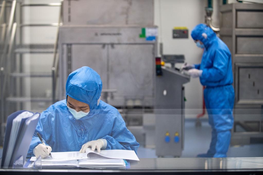 重庆国际生物城的一家生物制药企业内,工作人员正在生产车间工作。 新华社记者 唐奕 摄
