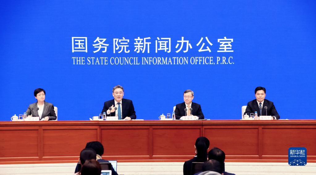3月1日,国务院新闻办公室在北京举行新闻发布会,请商务部部长王文涛、商务部副部长兼国际贸易谈判副代表王受文、部长助理盛秋平介绍坚持稳字当头,推动商务高质量发展有关情况,并答记者问。新华社记者 潘旭 摄