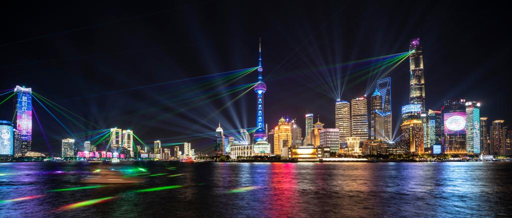 图为上海陆家嘴光影秀。 新华社记者 张豪夫 摄