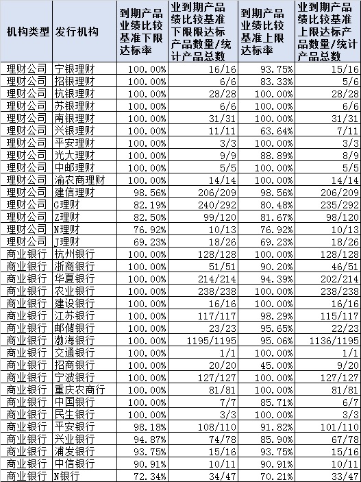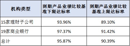 表2 主要理财机构2021年到期封闭式产品业绩达标率
