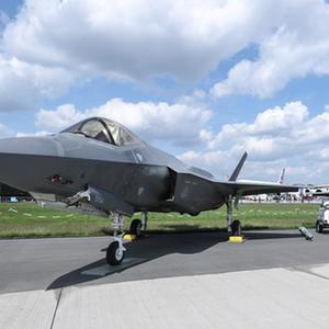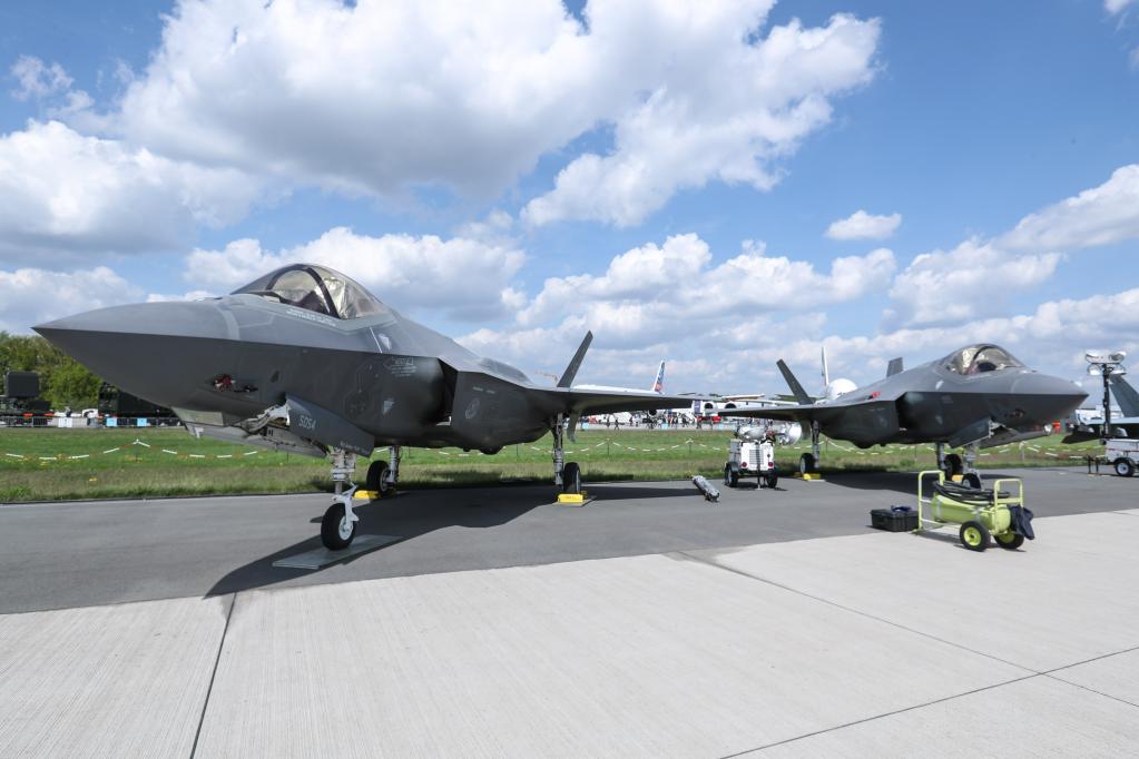 2018年4月27日,在德国柏林国际航空航天展上拍摄的“F-35”型战机。新华社记者单宇琦摄