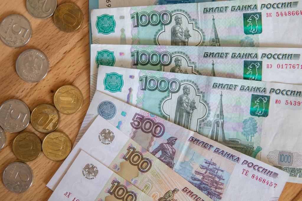 这是4月2日在俄罗斯首都莫斯科拍摄的卢布纸币和硬币。新华社记者 白雪骐 摄