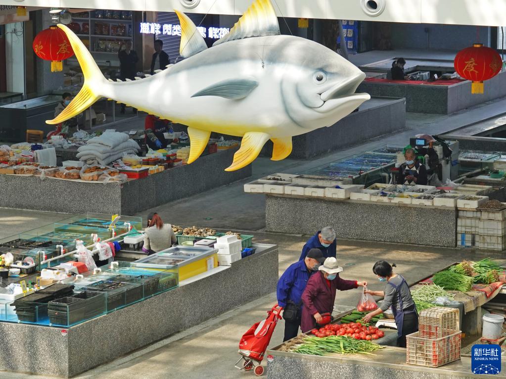 4月11日,顾客在山东烟台一家市场买菜。新华社发(唐克摄)