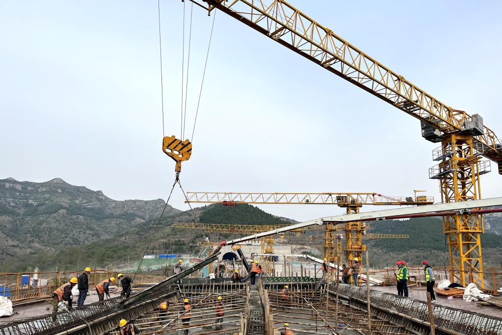 4月14日,济南至潍坊高速公路项目北镇头大桥箱梁浇筑作业正在进行。(受访单位供图)