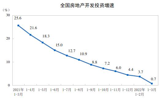 1—3月份,全国房地产开发投资27765亿元,同比增长0.7%;其中,住宅投资20761亿元,增长0.7%。