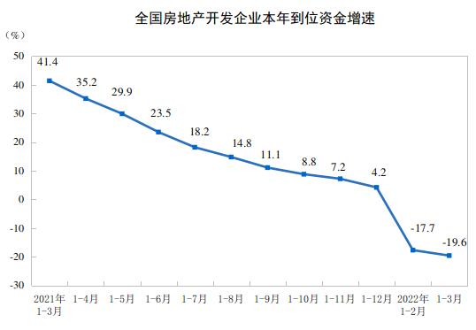 1—3月份,房地产开发企业到位资金38159亿元,同比下降19.6%。其中,国内贷款5525亿元,下降23.5%;利用外资10亿元,下降7.8%;自筹资金12395亿元,下降4.8%;定金及预收款12252亿元,下降31.0%;个人按揭贷款6369亿元,下降18.8%。