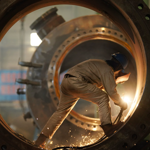 4月14日,哈电集团工人在进行生产作业。新华社记者 王建威 摄