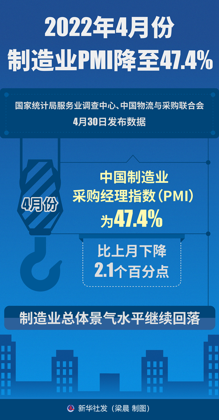新华社北京4月30日电(记者魏玉坤)国家统计局服务业调查中心、中国物流与采购联合会4月30日发布数据,4月份,中国制造业采购经理指数(PMI)为47.4%,比上月下降2.1个百分点,制造业总体景气水平继续回落。