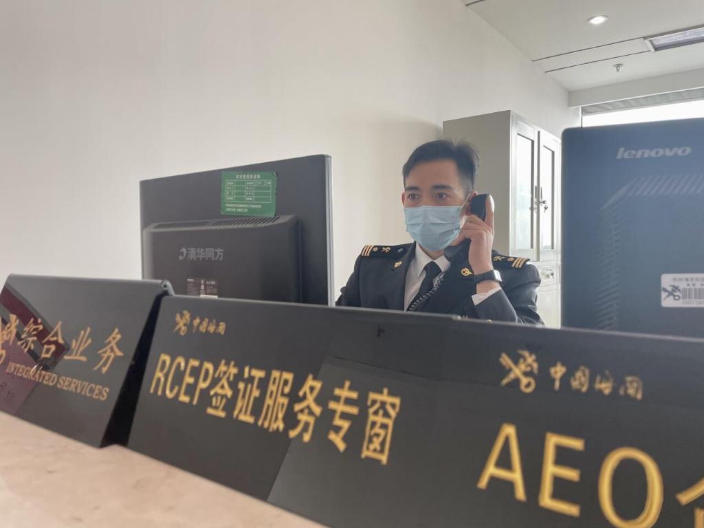 图为杭州海关关员正在受理企业关于RCEP原产地管理的政策咨询。(杭州海关供图)