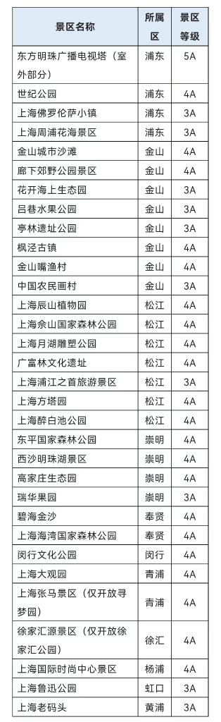 上海6月1日起开放的首批32家A级旅游景区名单(上海市文化和旅游局供图)
